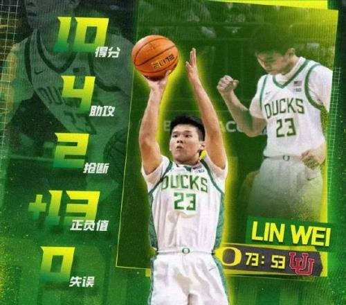 有道是东方不亮西方亮,就在今天相同时间,中国球员林葳所在的俄勒冈大学也进行了一场比赛,他们以73比53击败犹他大学,林葳11投4中,贡献10分4助攻1篮板2抢断的数据。
