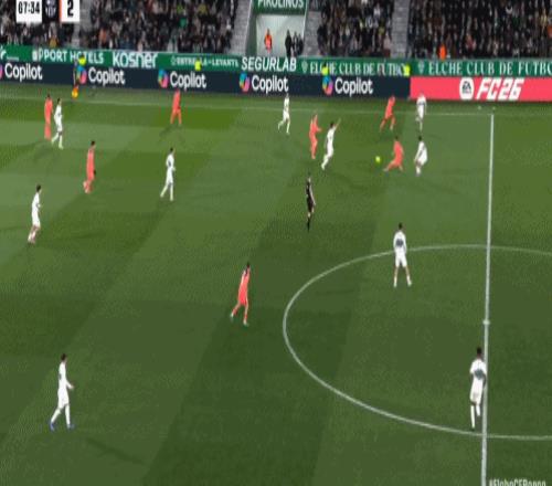 领先之后,巴萨并没有保守,亚马尔在右路持续制造威胁,费尔明和奥尔莫不断前插,埃尔切的防线被拉扯得极不舒服。虽然巴萨大举压上却未能再打破僵局,反倒是被主队抓住机会。